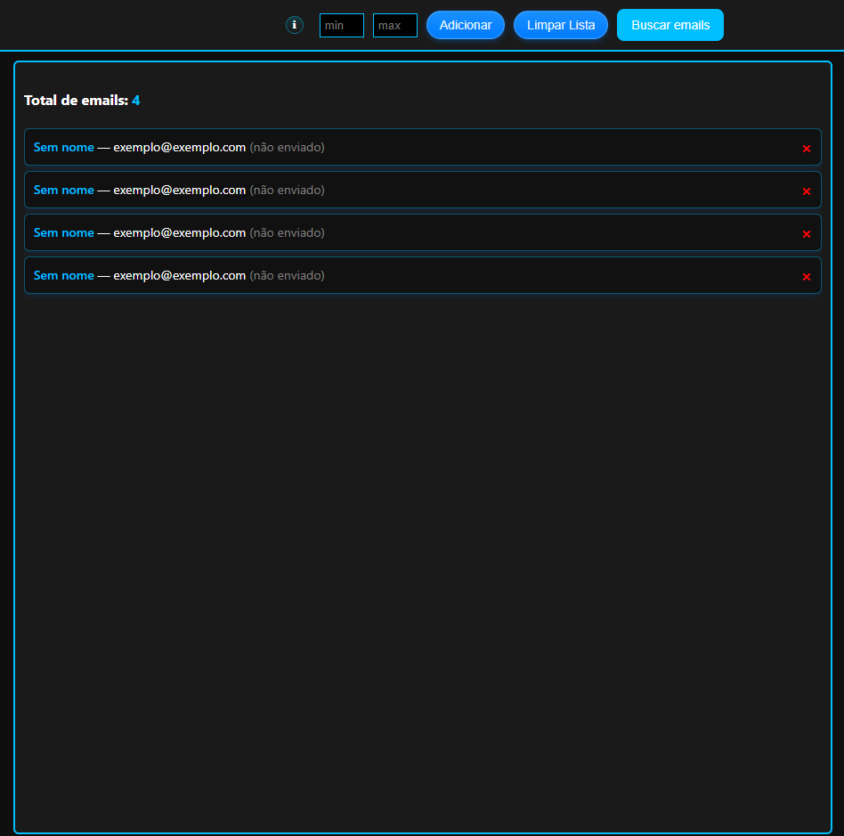 Com o X-Mail, você controla seus envios em um painel fluido e moderno, com animações e indicadores visuais de status. Tudo pensado para eficiência e praticidade.