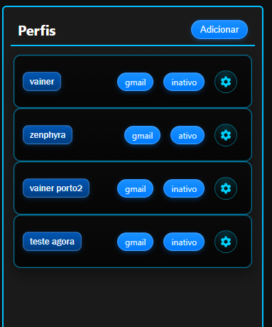 Cadastre múltiplos perfis e alterne entre eles facilmente.